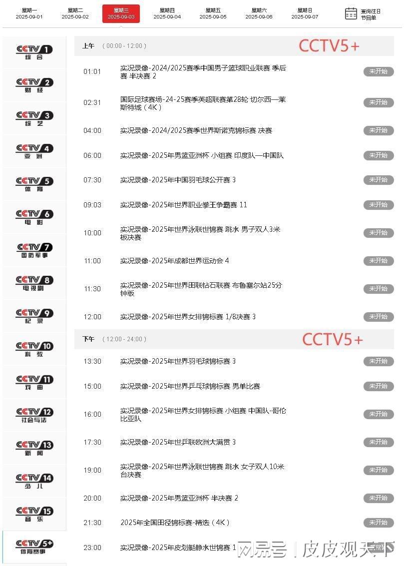 kaiyun-重要赛事!9月3日下午17:30!中央电视台CCTV5、CCTV5+直播节目表