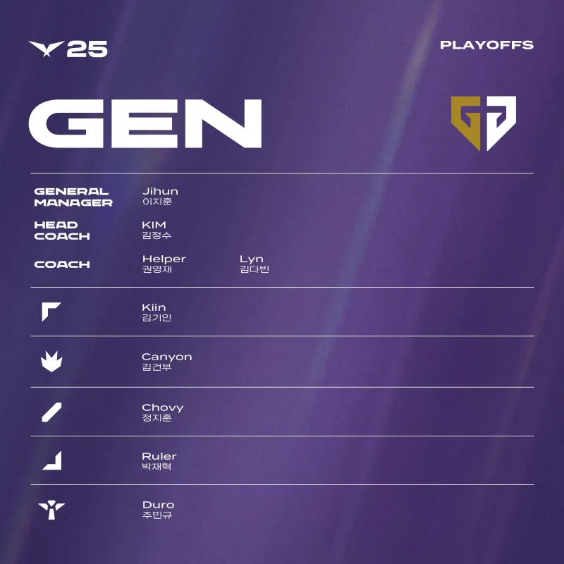 GEN:Kiin、Canyon、Chovy、Ruler、Duro
