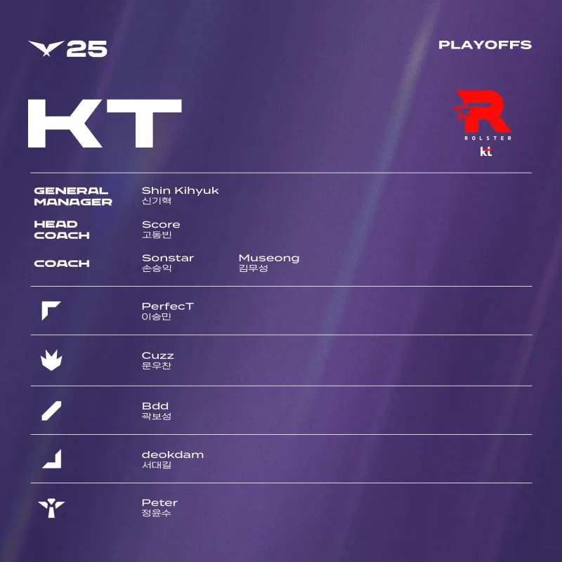 KT:PerfecT、Cuzz、Bdd、deokdam、Peter