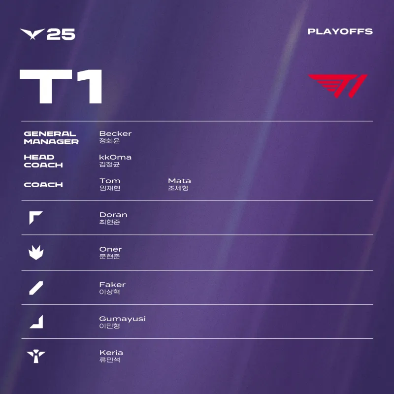 T1:Doran、Oner、Faker、Gumayusi、Keria